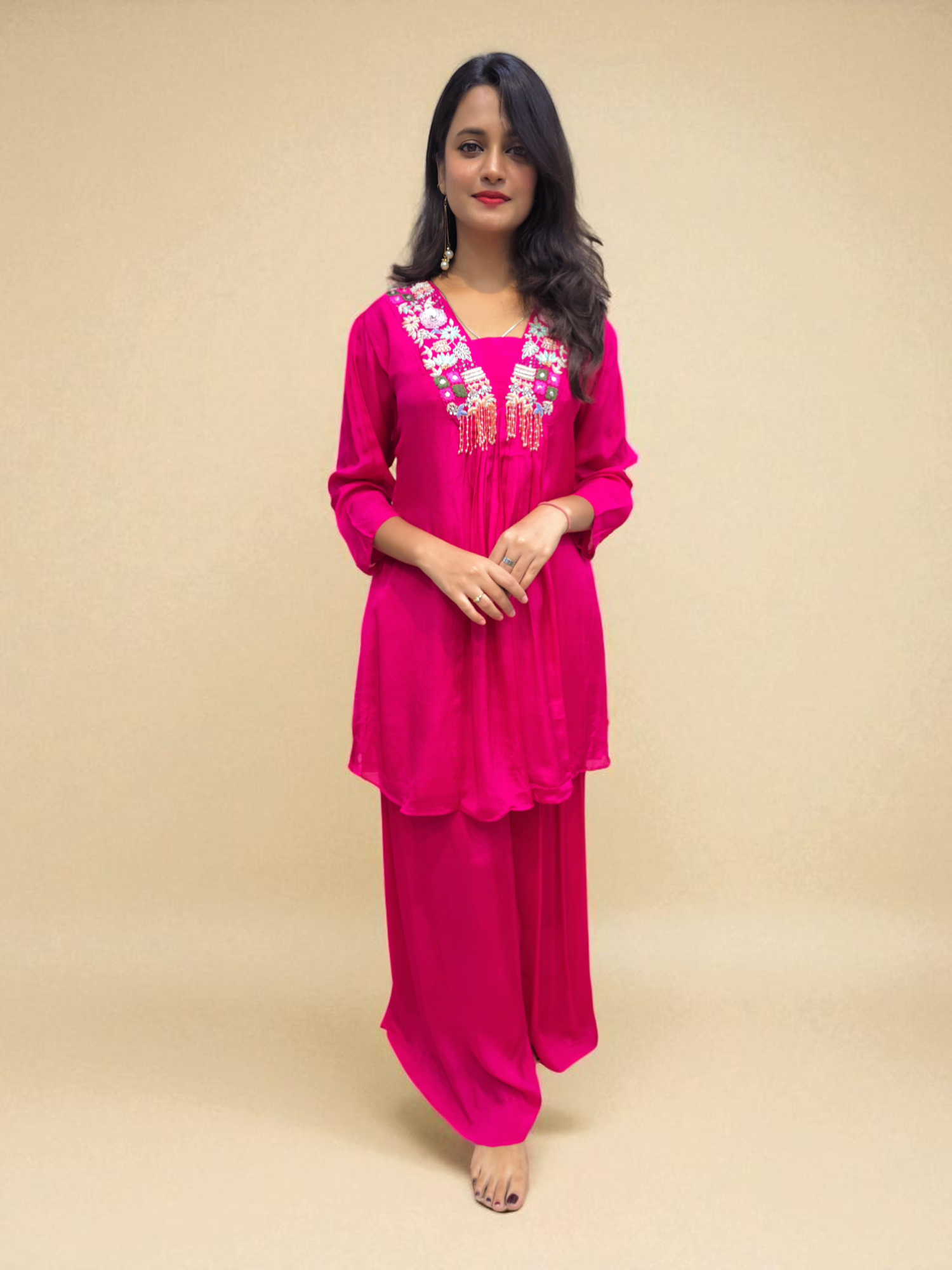 Indo-Western Kurta Palazzo Set for Women - Pink